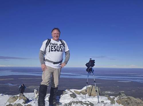 Yesterday morning on the mountain was even better. The trail up Mount Baldy had more snow and less ice than Bear Mountain. It was 28° and blue skies. Something about the sunshine is good for my soul. As strange as it may seem, I LOVE to climb in the dark, but I love climbing in sunlight even more. Over 100 air miles away, Denali was strikingly clear. Jeremiah 10:12 says, "The Lord made the earth by his power. He established the world by his wisdom and stretched out the heavens by his understanding." As I stood there surrounded by mountain ranges, I could not help worshipping the God who created it all as a GIFT for us.